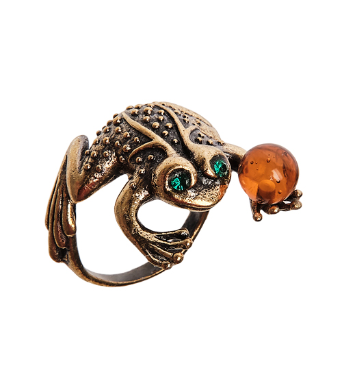AM-2673 Кольцо «Лягушка с шариком» (латунь, янтарь)