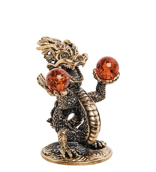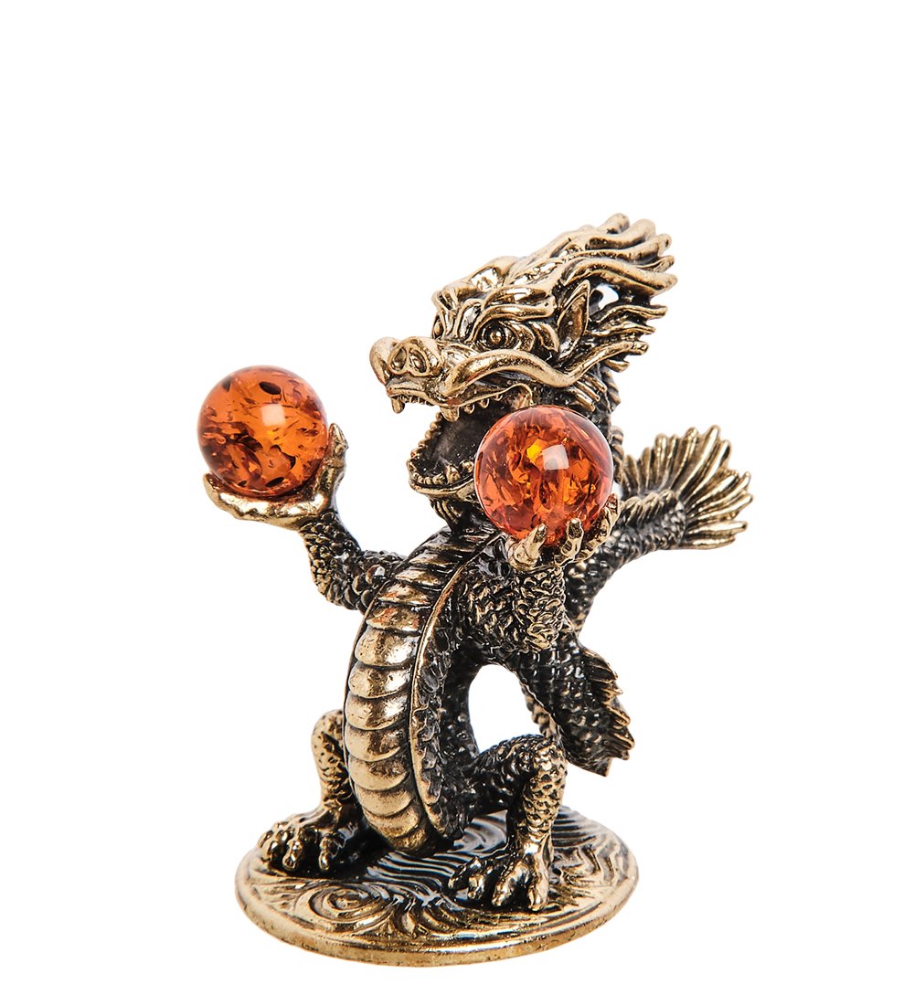 AM-2787 Фигурка «Дракон Китай» (латунь, янтарь)