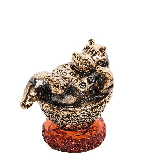 AM-2797 Шкатулка «Бегемотик Фифа» (латунь, янтарь)