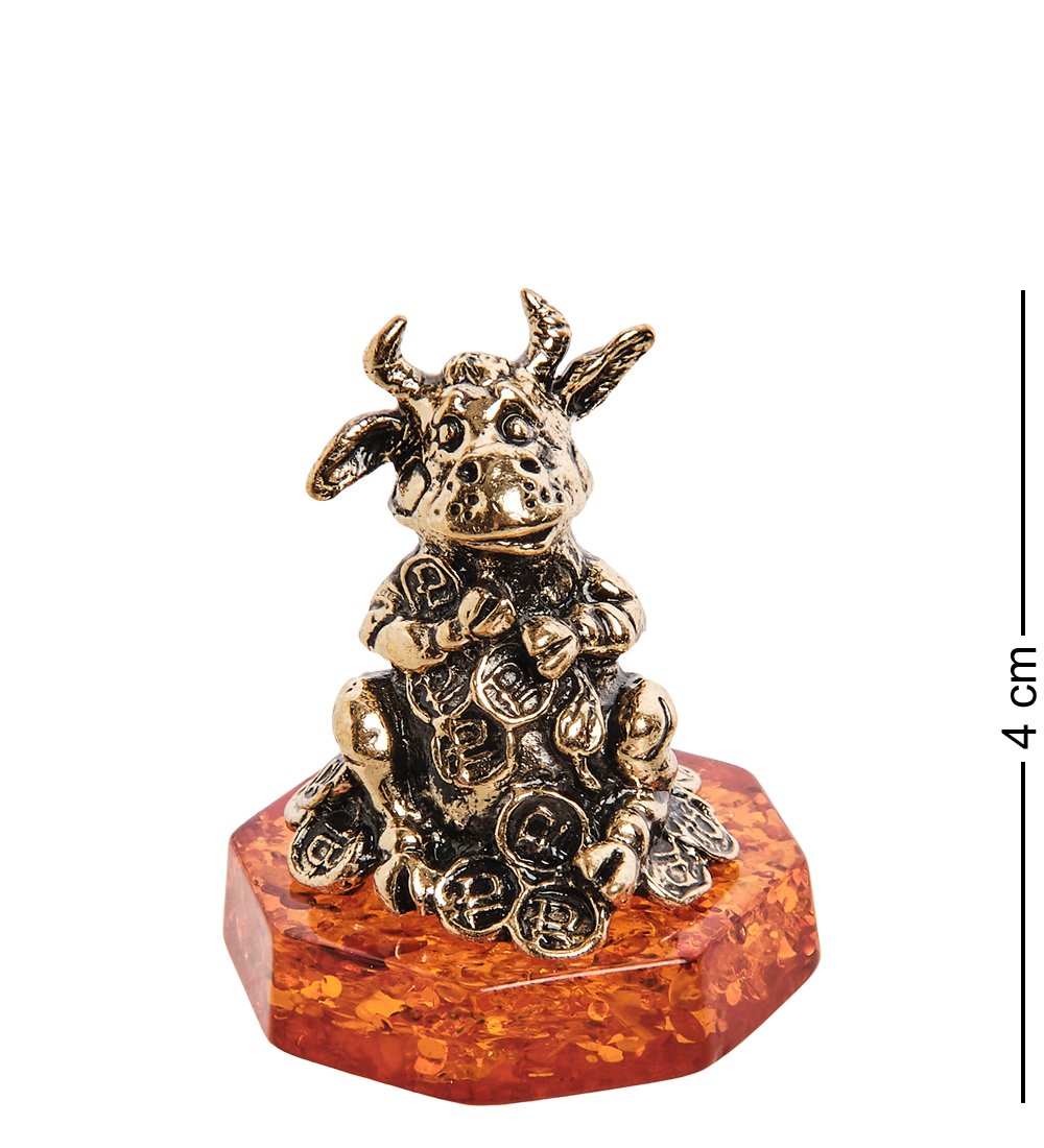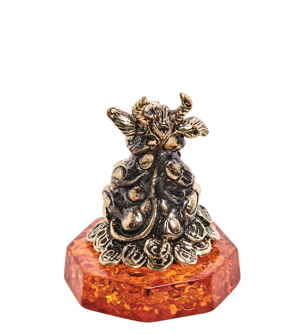 AM-2829 Фигурка «Бык денежный» (латунь, янтарь)