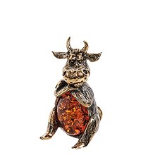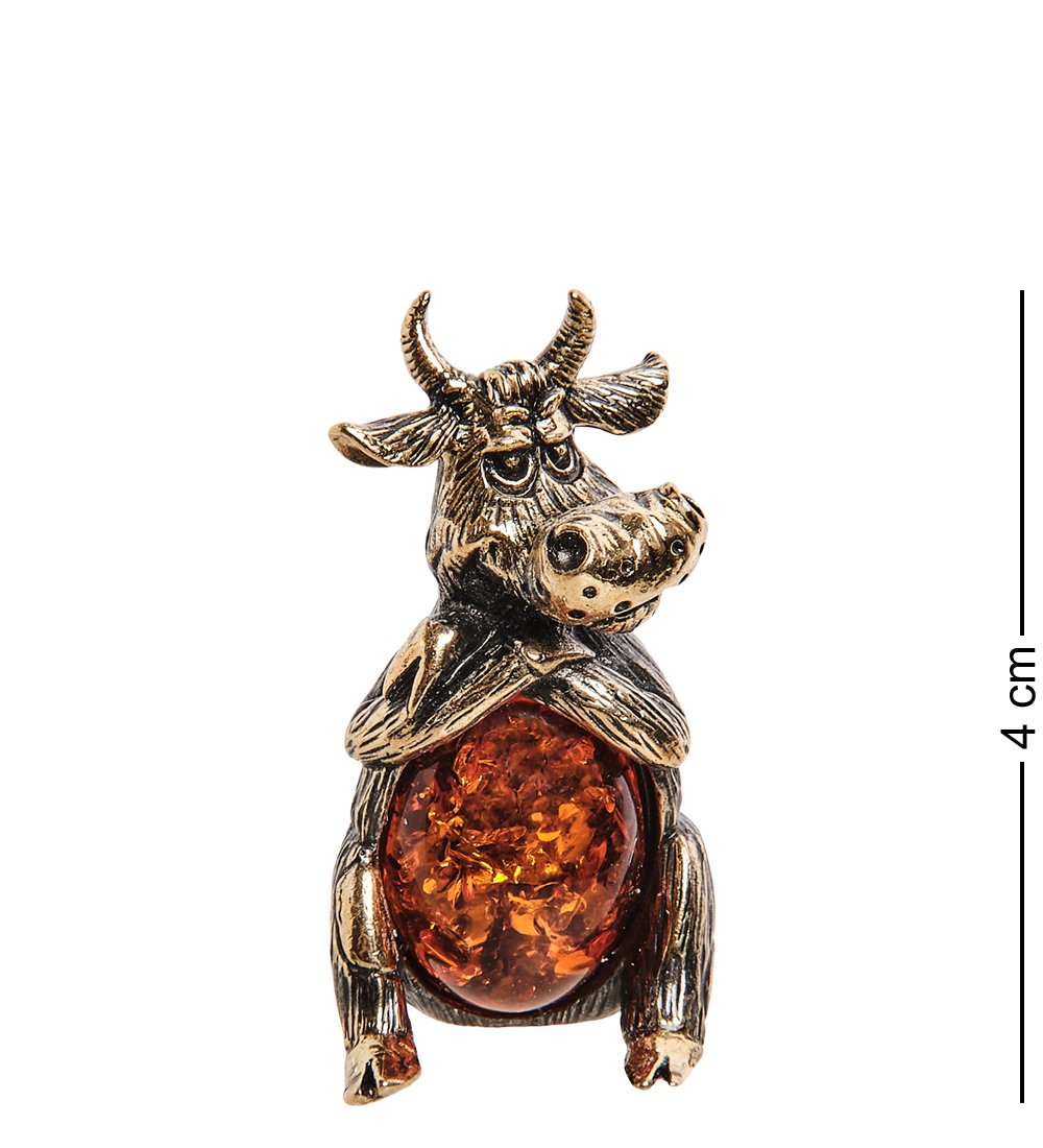 AM-2830 Фигурка «Бык обижака» (латунь, янтарь)