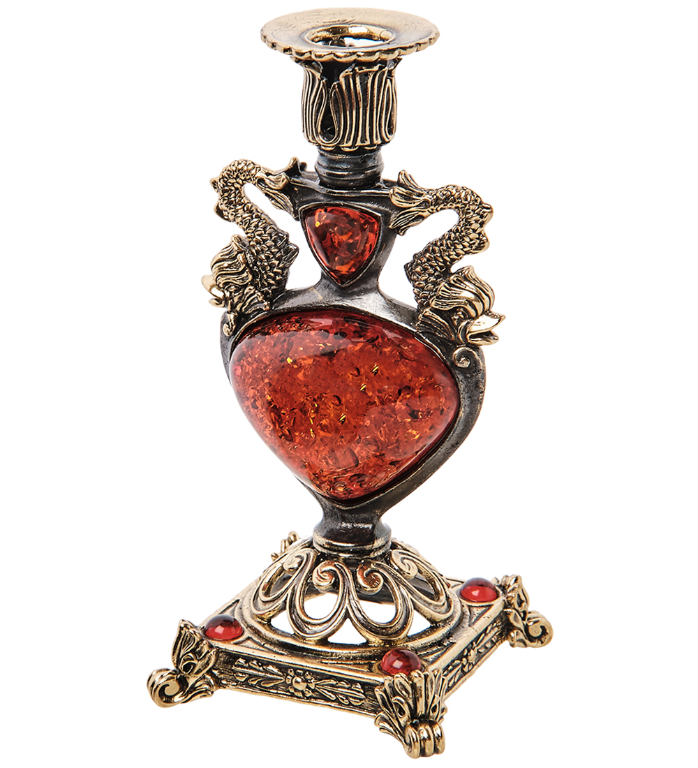 AM-2982 Подсвечник «Индийский» (латунь, янтарь)