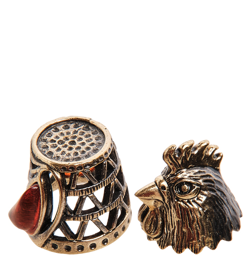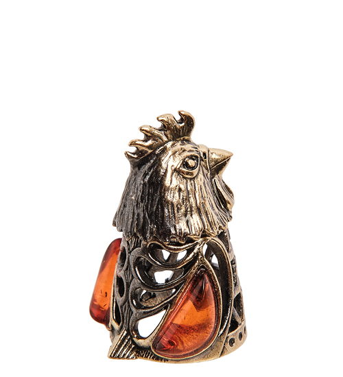 AM-2989 Наперсток «Петушок» (латунь, янтарь)