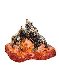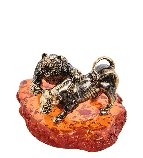 AM-3035 Фигурка «Медведь и бык» (латунь, янтарь)
