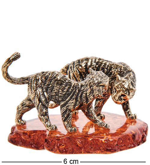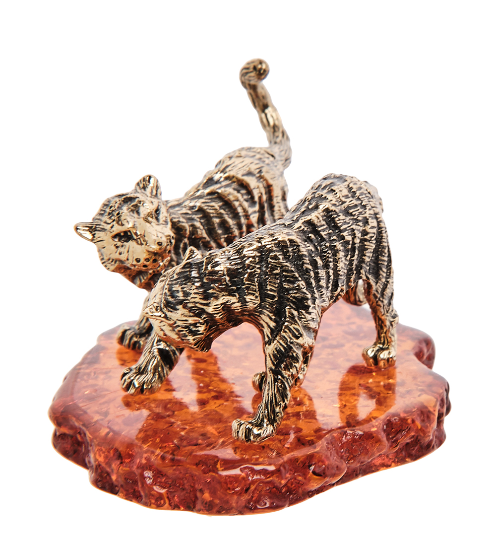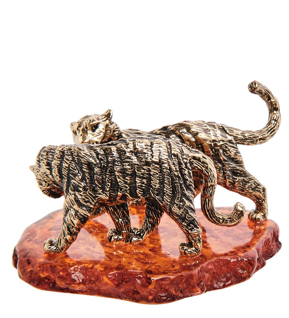 AM-3185 Фигурка «Тигры Саванна» (латунь, янтарь)