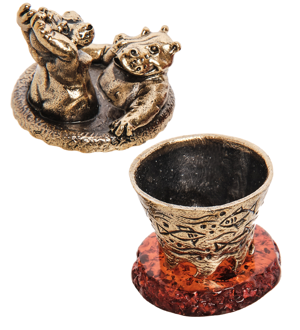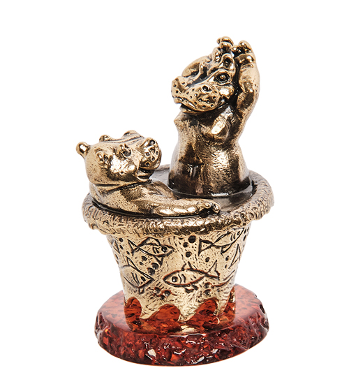 AM-3271 Шкатулка «Бегемоты Джакузи» (латунь, янтарь)