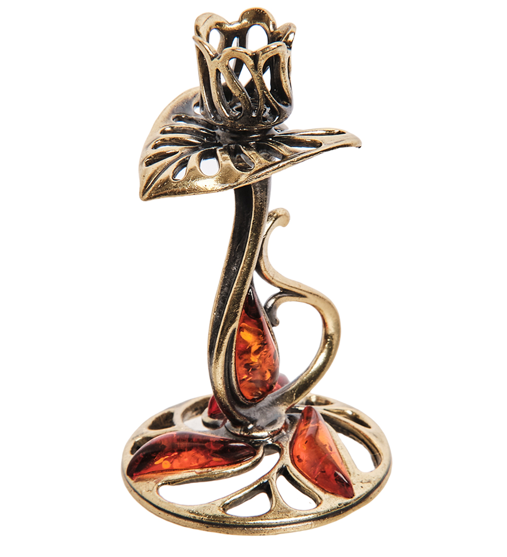 AM-3273 Подсвечник «Кувшинка» (латунь, янтарь)