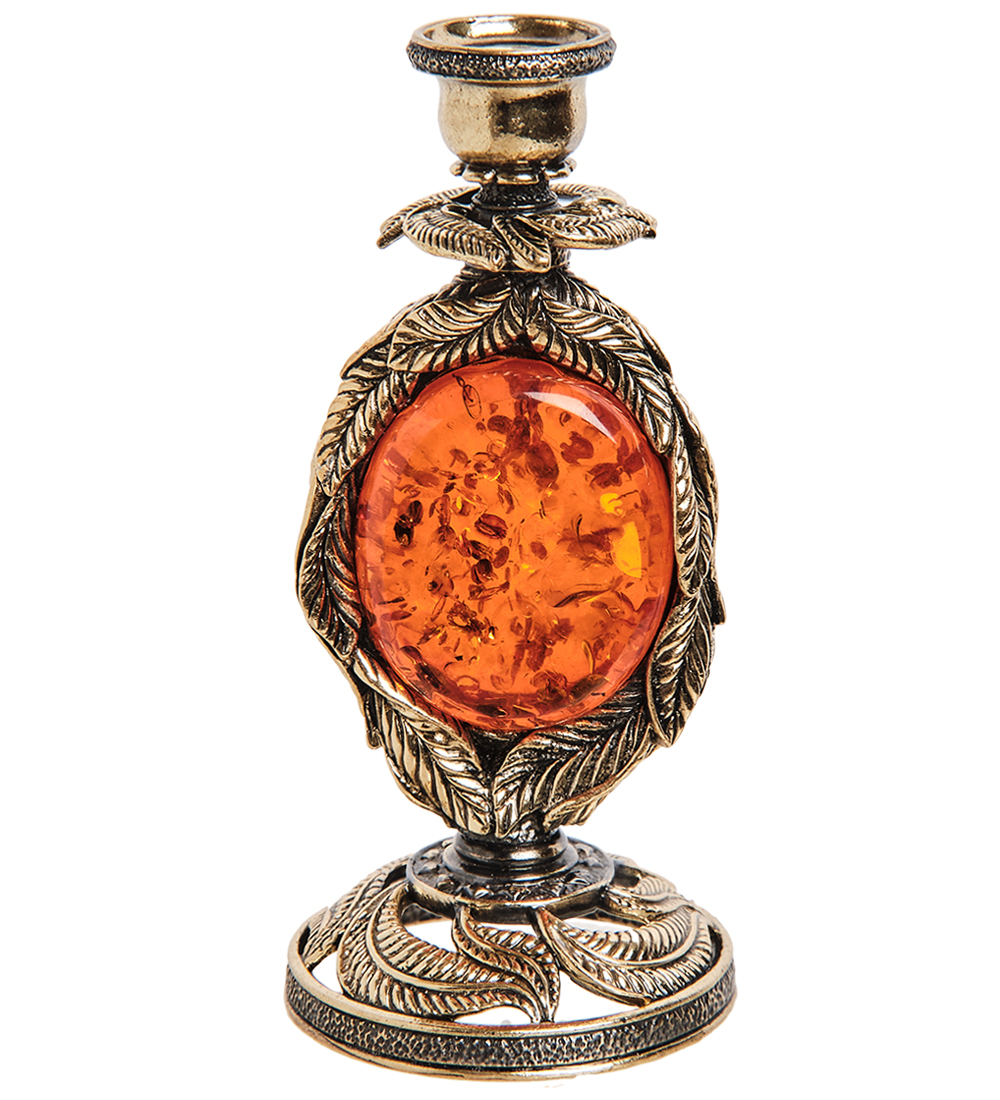 AM-3276 Подсвечник «Ива» (латунь, янтарь)