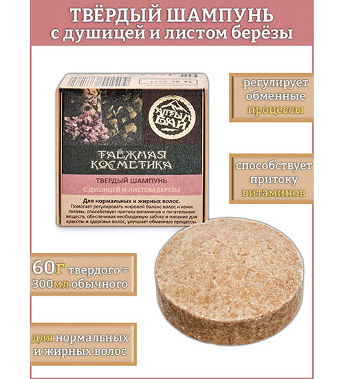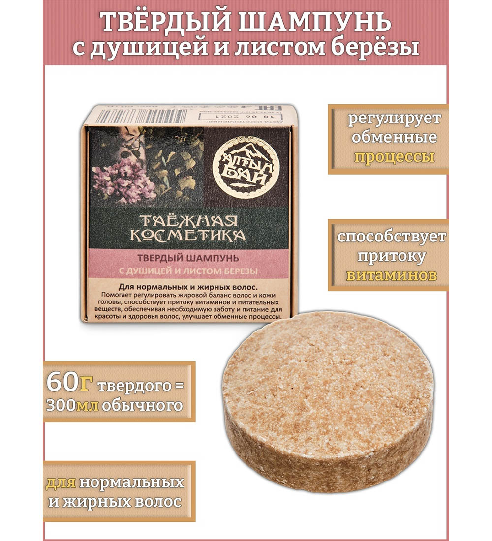 ALT-01/1 Твердый шампунь «С Душицей и листом березы», 60 гр