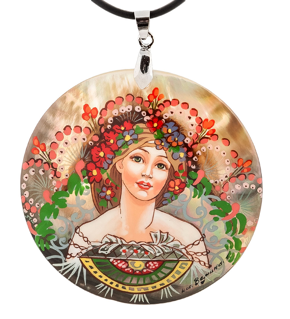 ШК-55/ 41-D Кулон из перламутра «Альфонс Муха»