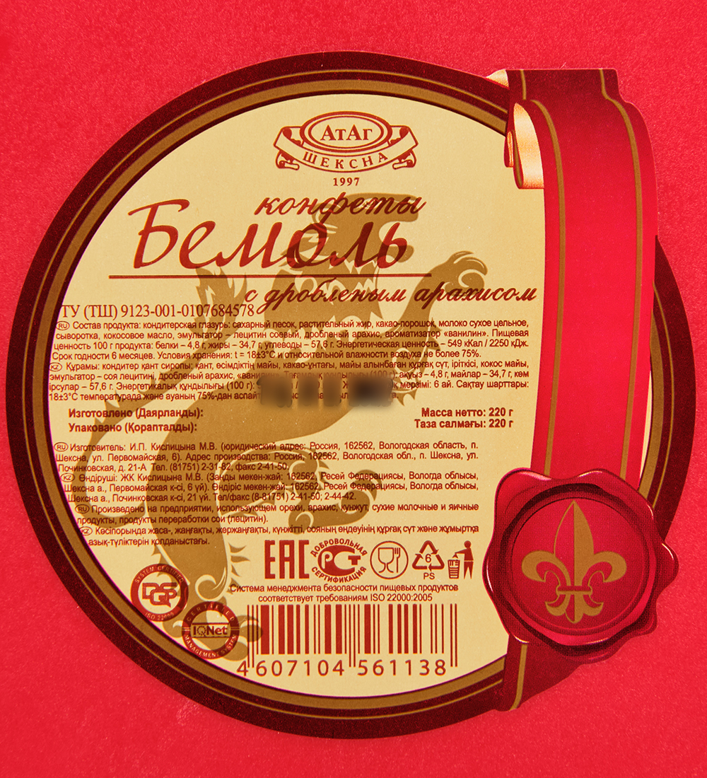 AT-01/1 Конфеты «Бемоль» с дробленым арахисом, 220 г