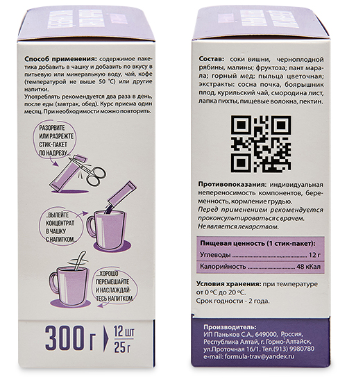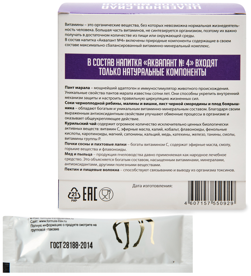 FP-04/ 4 Аквапант №4 «Витаминный» на основе сока черноплодной рябины, вишни и малины, 300гр