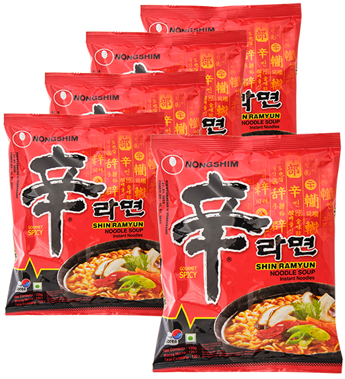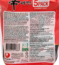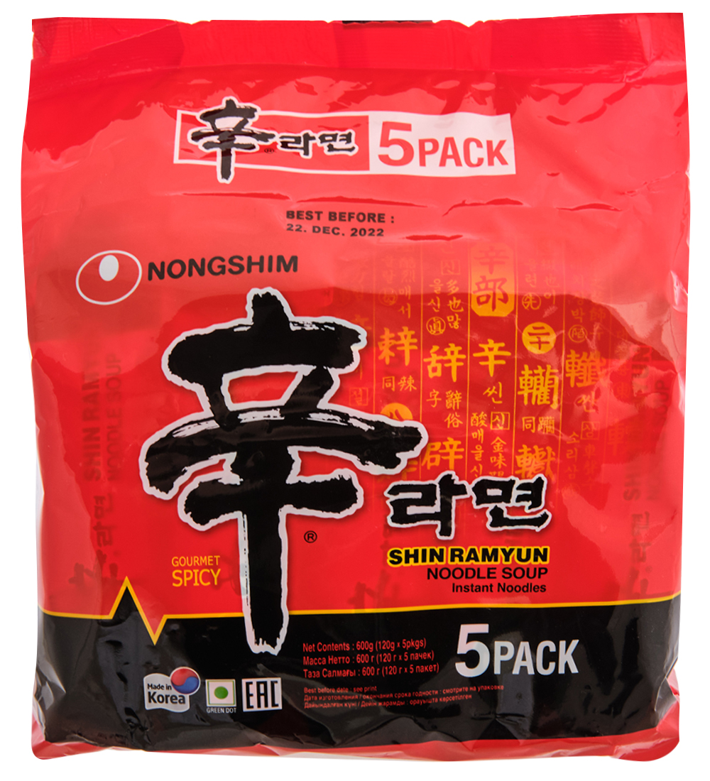 Шин Рамен – острая ароматная паста. В ее состав входят овощные и грибные хлопья, а насыщенный и терпкий бульон умами содержит соевый соус, экстракты анчоуса и ламинарии. За остроту блюда отвечает тщательно подобранный букет специй – перец чили, лук и чеснок, имбирь и редька делают лапшу пикантной и обжигающей. Впрочем, остроту можно варьировать, уменьшив количество приправы или добавив воды. На основе Шин Рамен легко создавать сытные супы в азиатском стиле – добавьте лапшу и специи в бульон перед окончанием приготовления, выключите огонь и подержите суп под крышкой 3-5 минут. Также паста используется в качестве гарнира к мясным блюдам.
