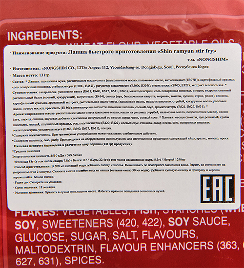 Шин Рамен – острая ароматная паста. В ее состав входят овощные и грибные хлопья, а насыщенный и терпкий бульон умами содержит соевый соус, экстракты анчоуса и ламинарии. За остроту блюда отвечает тщательно подобранный букет специй – перец чили, лук и чеснок, имбирь и редька делают лапшу пикантной и обжигающей. Впрочем, остроту можно варьировать, уменьшив количество приправы или добавив воды. На основе Шин Рамен легко создавать сытные супы в азиатском стиле – добавьте лапшу и специи в бульон перед окончанием приготовления, выключите огонь и подержите суп под крышкой 3-5 минут. Также паста используется в качестве гарнира к мясным блюдам.
