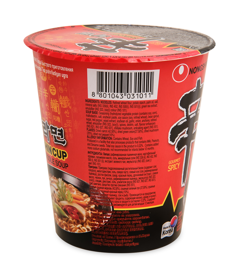 Шин Рамен – острая ароматная паста. В ее состав входят овощные и грибные хлопья, а насыщенный и терпкий бульон умами содержит соевый соус, экстракты анчоуса и ламинарии. За остроту блюда отвечает тщательно подобранный букет специй – перец чили, лук и чеснок, имбирь и редька делают лапшу пикантной и обжигающей. Впрочем, остроту можно варьировать, уменьшив количество приправы или добавив воды. На основе Шин Рамен легко создавать сытные супы в азиатском стиле – добавьте лапшу и специи в бульон перед окончанием приготовления, выключите огонь и подержите суп под крышкой 3-5 минут. Также паста используется в качестве гарнира к мясным блюдам.