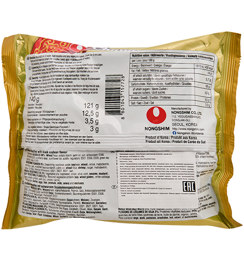 Острый и пряный рамен с восхитительным соусом из черных бобов. Соевые бобы – главный источник растительного белка, а также витаминов А и Е, минералов и важных микроэлементов. Интересный темный цвет бульона – дополнительный бонус, а его аромат и необычный вкус – результат тщательно подобранных ингредиентов и букета специй.