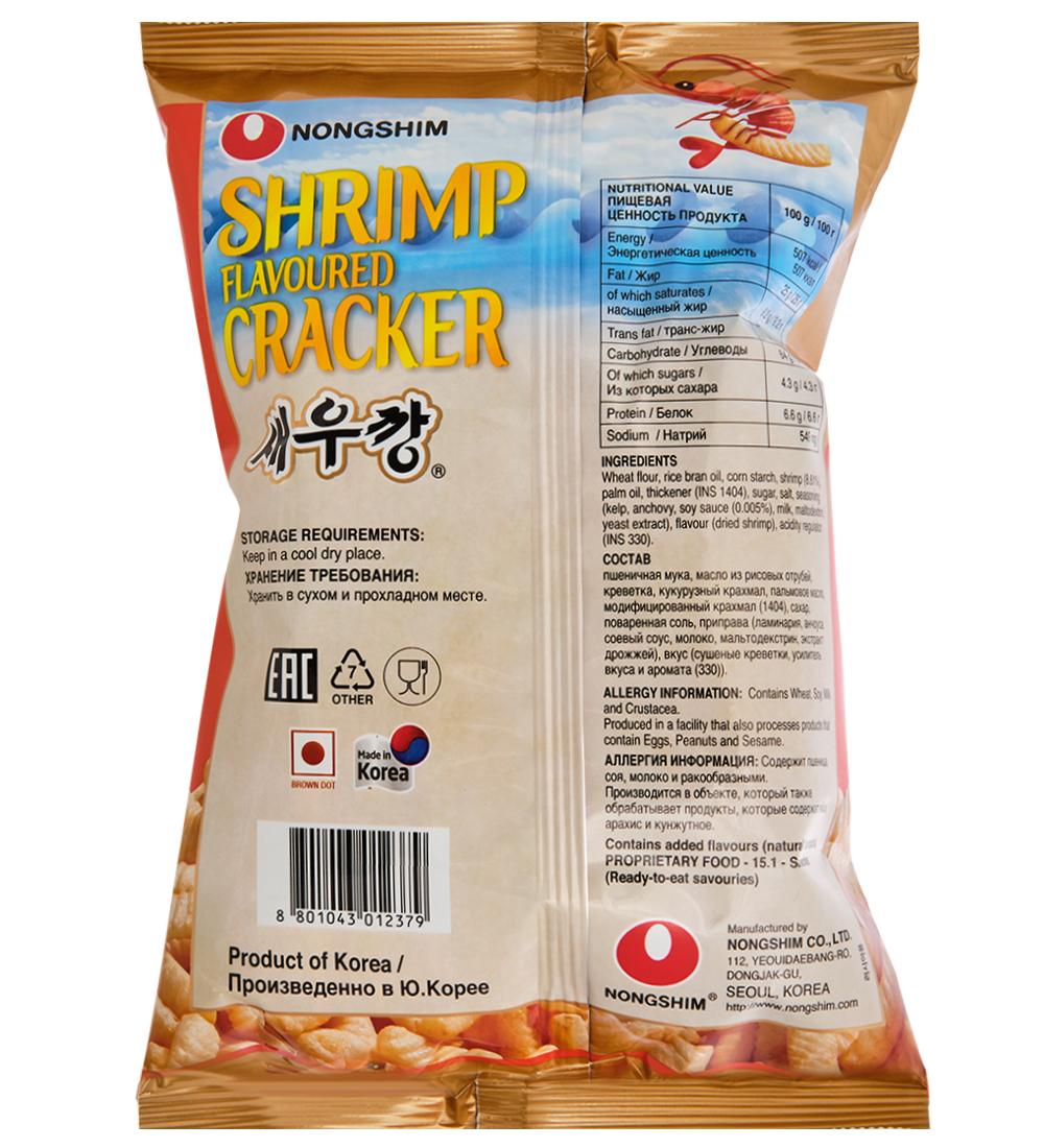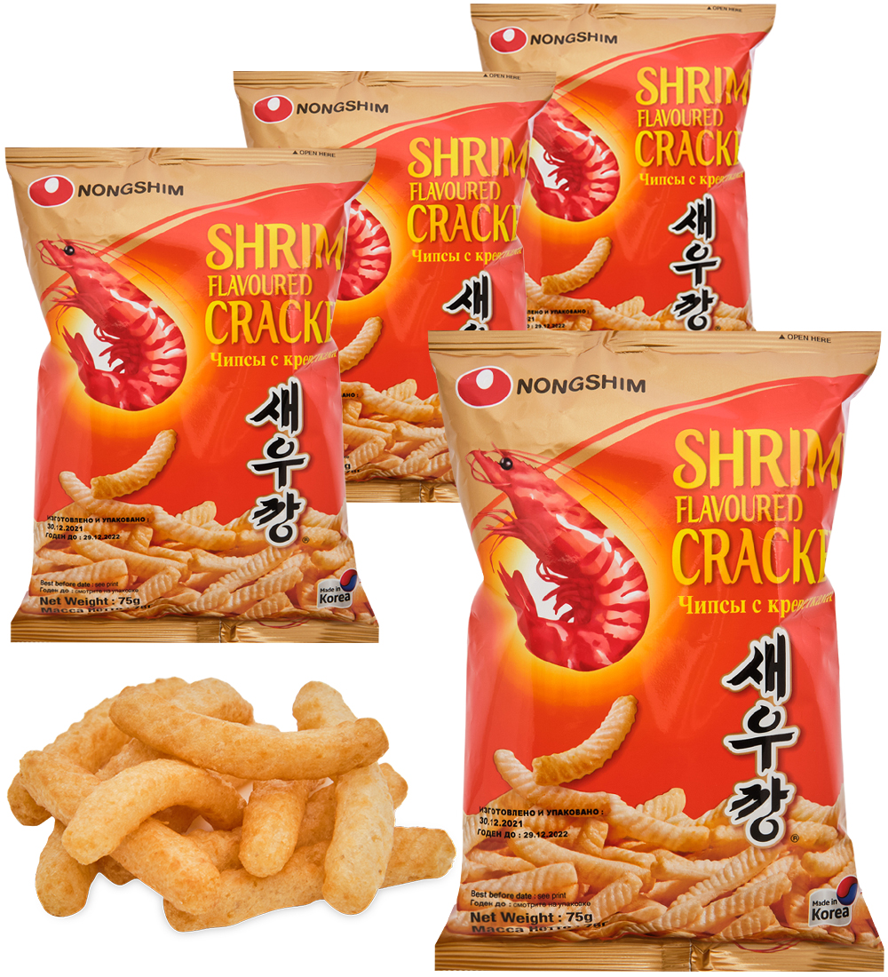 Креветочные чипсы – идеальная закуска к пиву, а в сочетании с традиционными корейскими соусами получится трапеза в азиатском стиле. Не нужно думать, что еще добавить на стол, ведь такой ансамбль уже самодостаточный и сытный. Чипсы сделаны из натуральных ингредиентов. Блюдо родом из Индонезии и Малазии, там это национальное угощение. Чаще его можно встретить под названием Крупук или Крупок. В ресторанах и кафе традиционной кухни такие чипсы с острым соусом подают как аппетайзеры или в дополнение к основному блюду. Закуску легко встретить и в уличных магазинчиках. Уже многие десятилетия креветочные чипсы делают по одной технологии. Мясо морепродукта измельчают в порошок, добавляют пшеничную муку, воду, специи, и придают получившемуся тесту форму. Заготовки высушивают на солнце, а непосредственно перед подачей обжаривают в большом количестве масла. Однако в современном варианте фритюр заменили на запекание в печи. Внешний вид закуски может быть любой. Например, в варианте от Nongshim — это тонкая соломка, напоминающая жареную картошку. Компания Nongshim давно лидер среди производителей корейских продуктов благодаря стабильно высокому качеству товаров. В составе чипсов только натуральные ингредиенты.