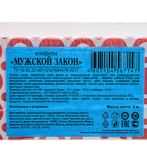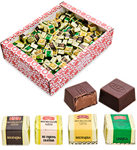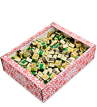 Материал: Кондитерская глазурь (сахар, заменитель какао масла (рафинированное дезодорированное растительное пальмоядровое масло, эмульгатор лецитин е322), какао-порошок, сухое цельное молоко, сыворотка сухая молочная, ароматизатор “ванилин”), начинка пралине (сахарный песок, какао-порошок, кокосовое масло, сухое цельное молоко, сыворотка сухая молочная, эмульгатор-лецитин е322), натуральные ароматизаторы: лесной орех, карамелизованное молоко, фисташка, грецкий орех