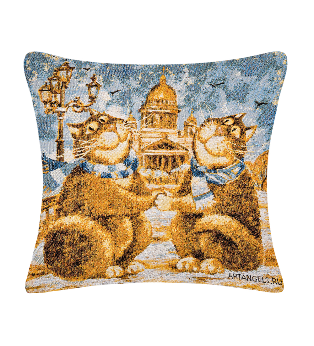 ANG-1990/1 Подушка гобеленовая «Встреча у Исаакия кота Васьки и кота Пузи» 30х30