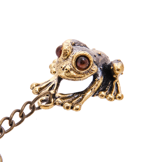 AM-3608 Брелок «Лягушка Амазонская» (латунь, янтарь)