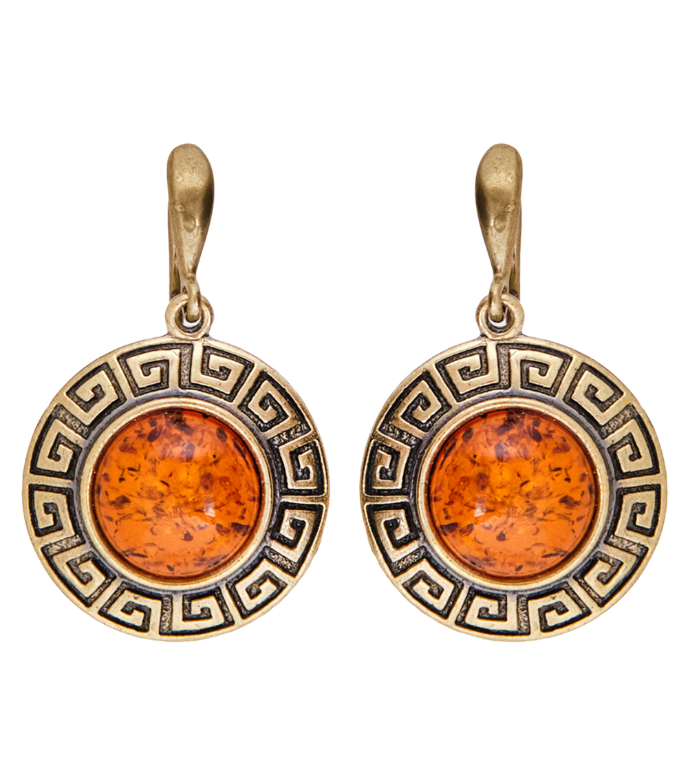 AM-3748 Серьги «Орнамент» (латунь, янтарь)