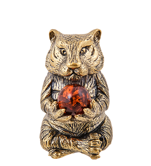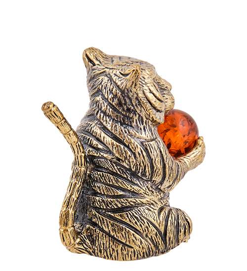 AM-3780 Колокольчик «Тигр Шар» (латунь, янтарь)