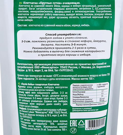 FLK-01/2 Очищающая клетчатка Яблочный detox 100 гр.