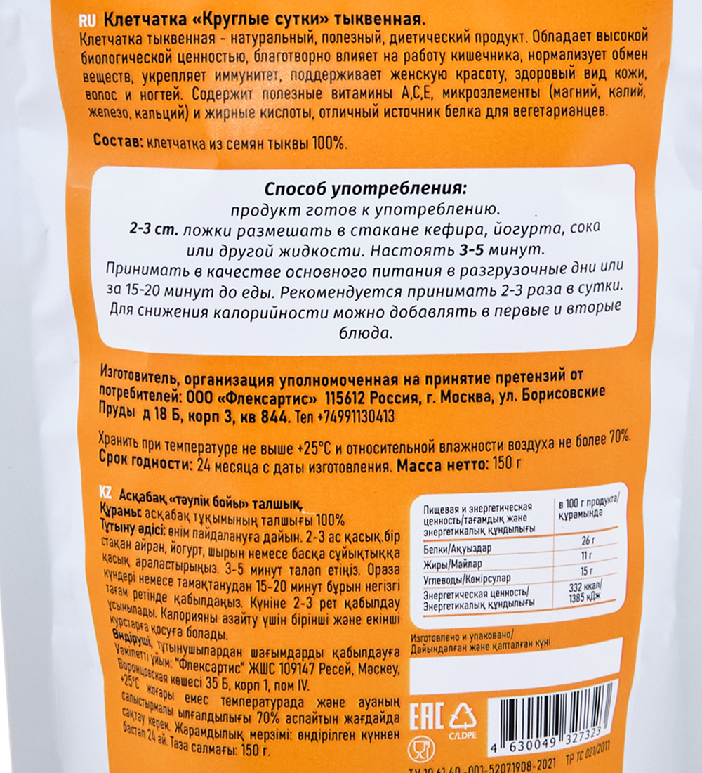 FLK-01/4 Клетчатка тыквенная 150 гр.