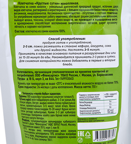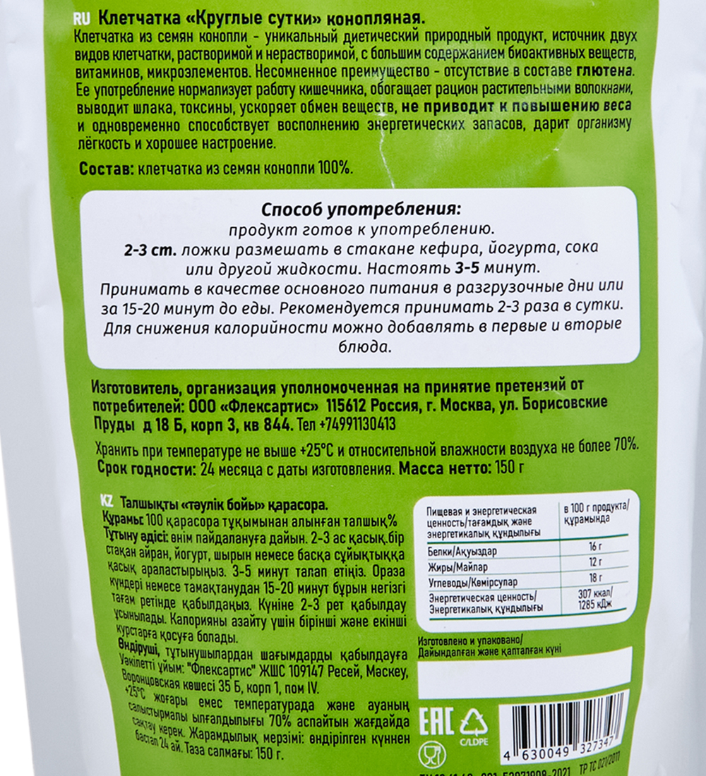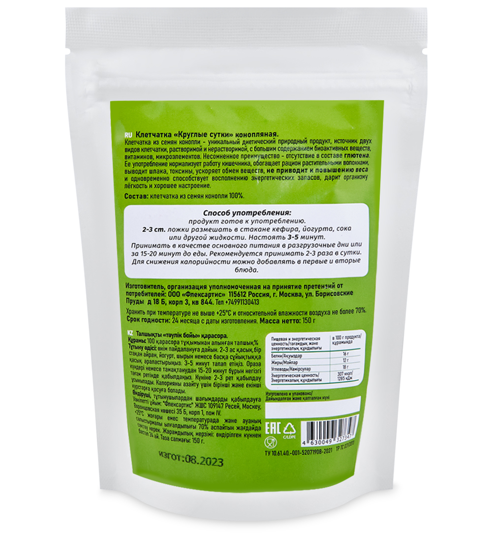 Материал: Клетчатка из семян конопли 100%