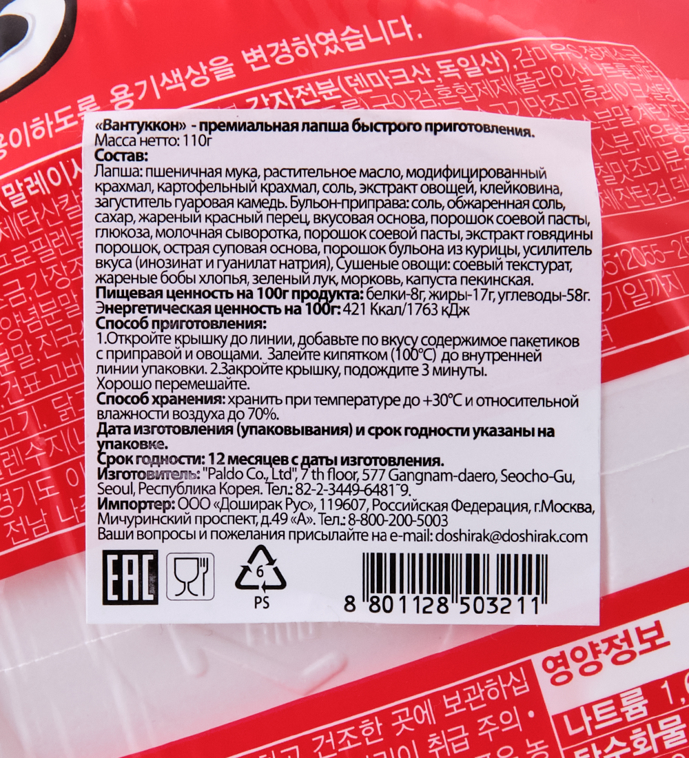 ER-156 Лапша «Вантуккон», 1шт х 110г, Корея