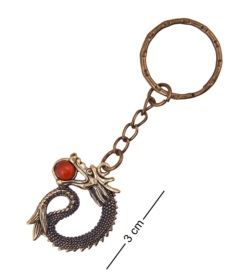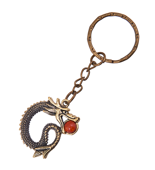 AM-3822 Брелок «Дракон Мушу» (латунь, янтарь)