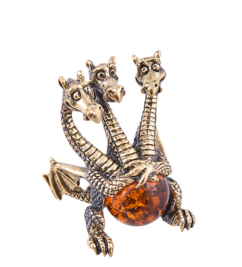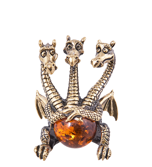 AM-3850 Фигурка «Дракон Горыныч» (латунь, янтарь)