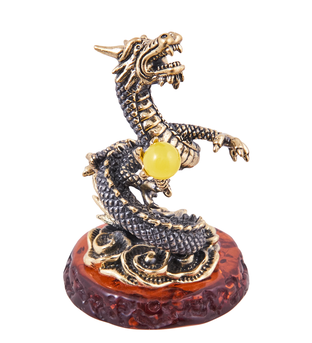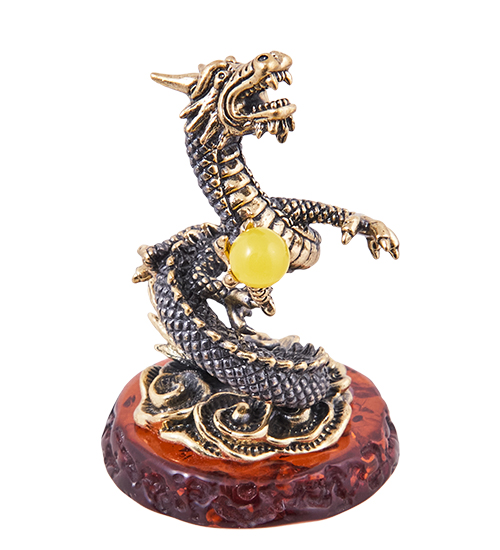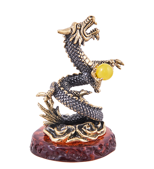 AM-3851 Фигурка «Дракон Мушу» (латунь, янтарь)