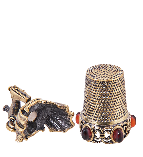 AM-3867 Наперсток «Швейная машинка с гипюром» (латунь, янтарь)