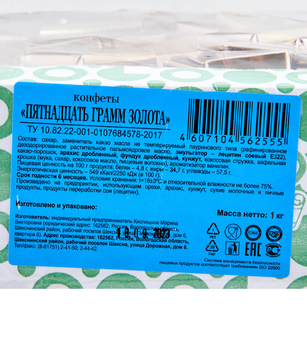 AT-74/62 Конфеты «Пятнадцать грамм золота», 1 кг