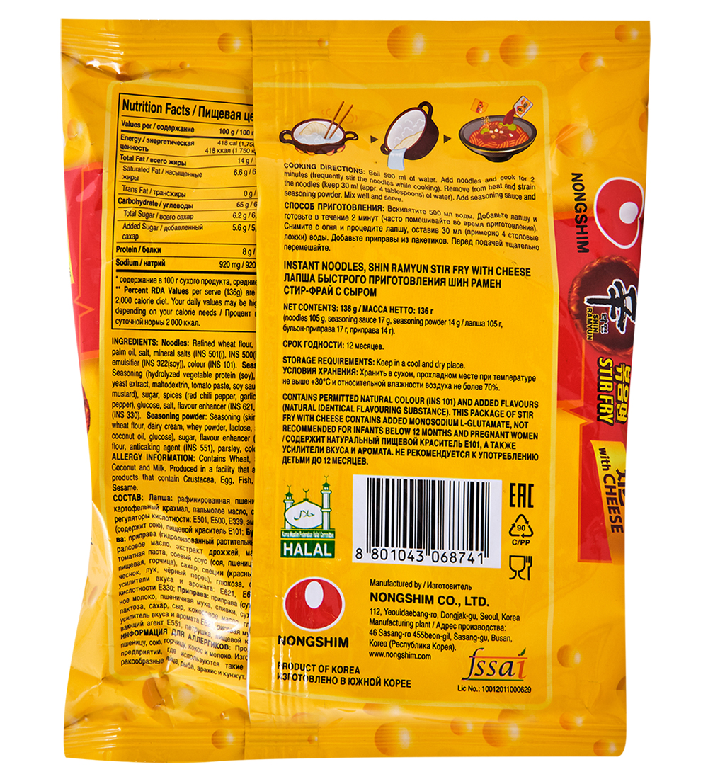 ER-161 Лапша «Нонгшим» Шин Рамен с сыром (STIR FRY), 4шт х 136 г, Корея