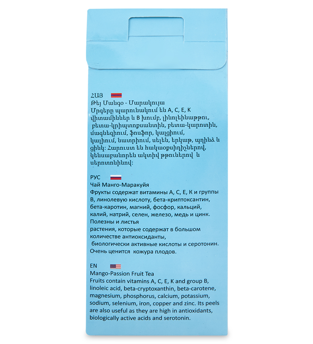 Материал: Индийский черный чай, кусочки манго, бутоны роз, лепестки календулы