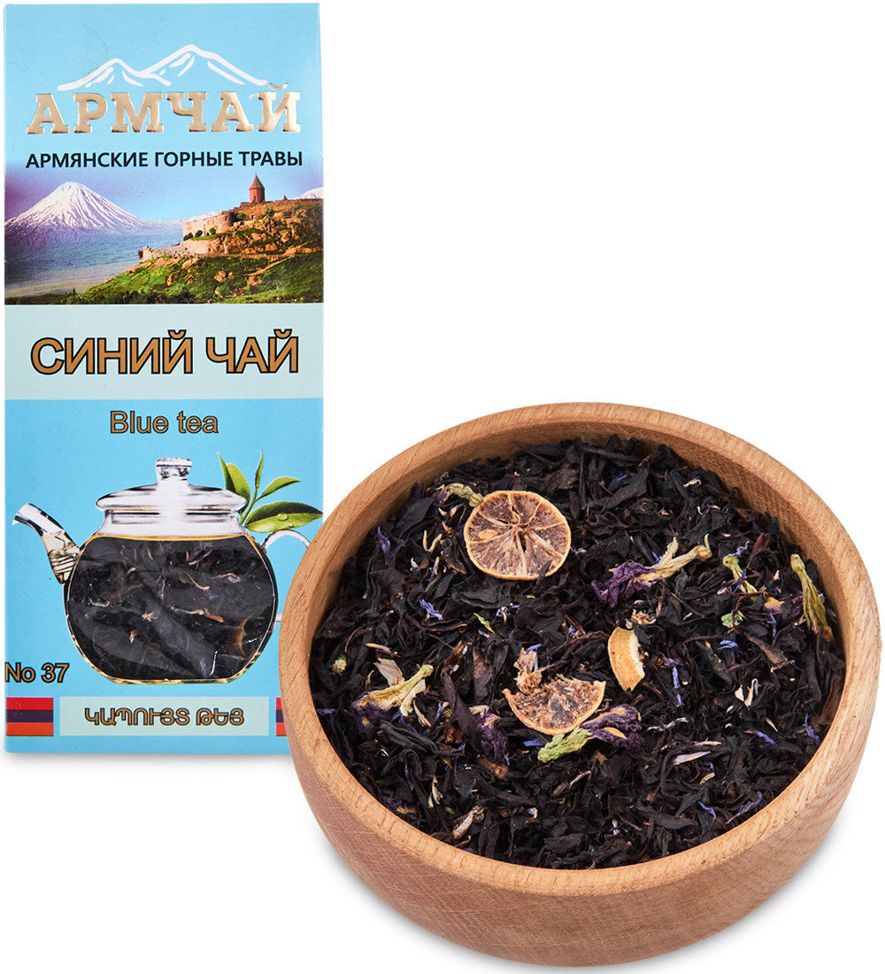 Материал: Цейлонский черный чай, корица, гвоздика, апельсиновые корки, синие цветы и натуральное эфирное масло лимона