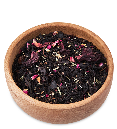 Материал: Зеленый чай, кусочки ананаса и клубники, лепестки василька и подсолнечника.