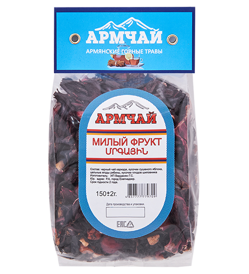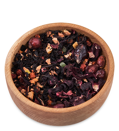 Материал: Черный чай каркаде кусочки сушеного яблока, цельные ягоды рябины, кусочки плодов шиповника