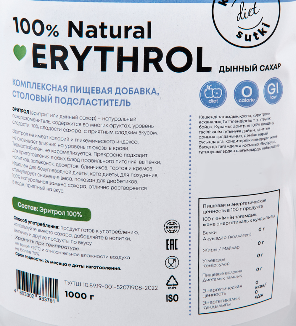 Материал: Эритрол (эритрит или дынный сахар) - 100%