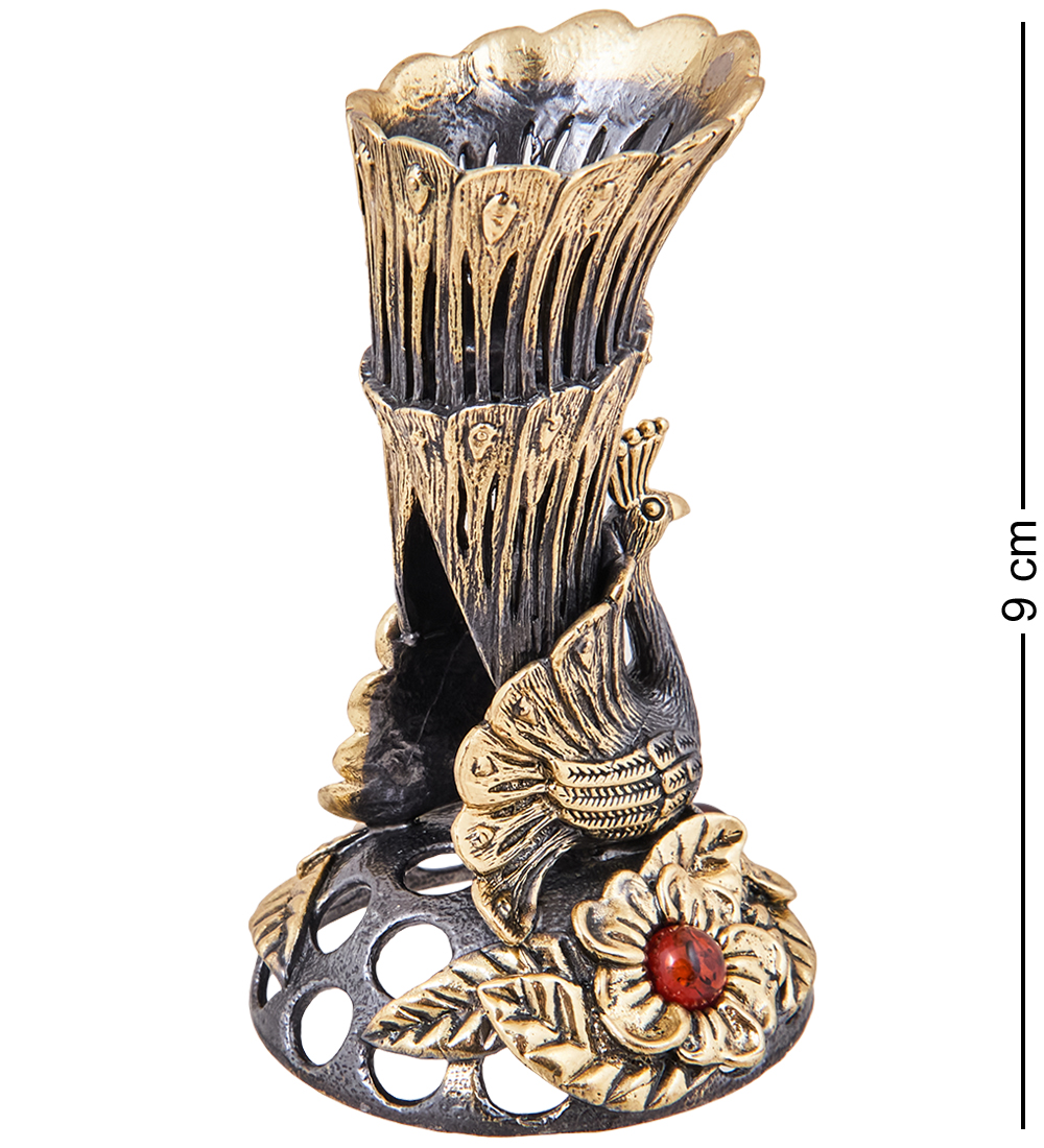 AM-3909 Подсвечник «Павлин» (латунь, янтарь)