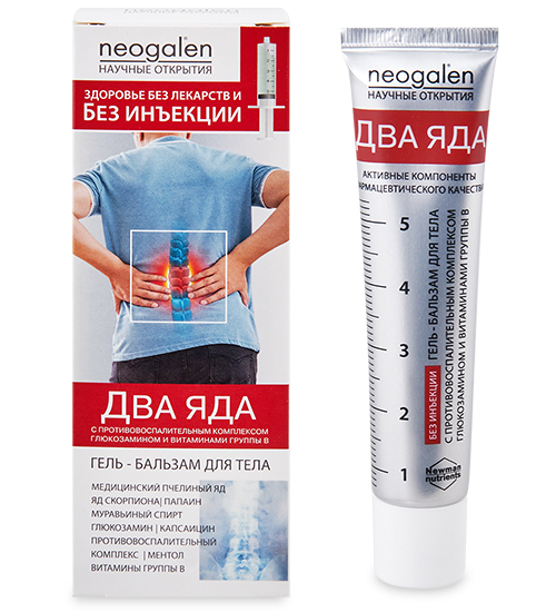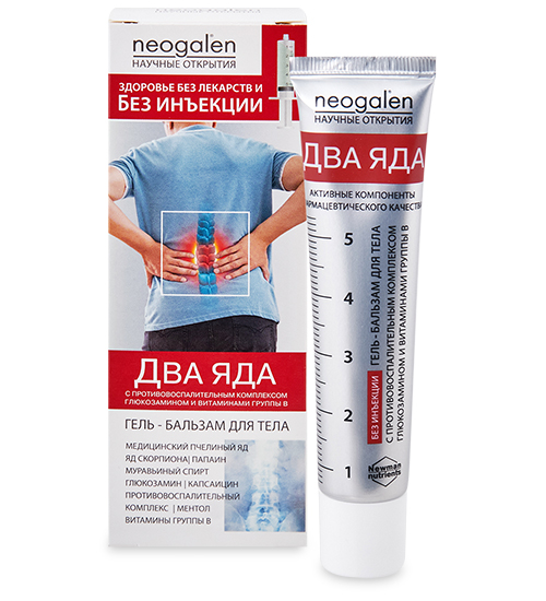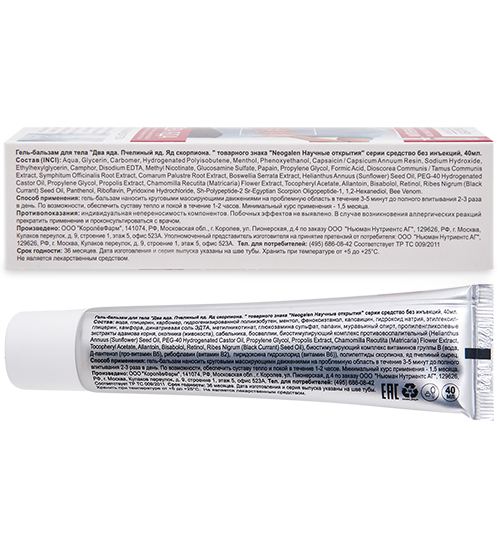 GL-48/02 Без инъекций. Два яда. (пчелиный яд/яд скорпиона) гель-бальзам /тела 40мл