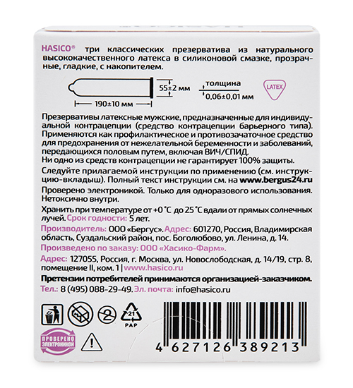 GL-37/16 Хасико презервативы Классические №3 (МИ)