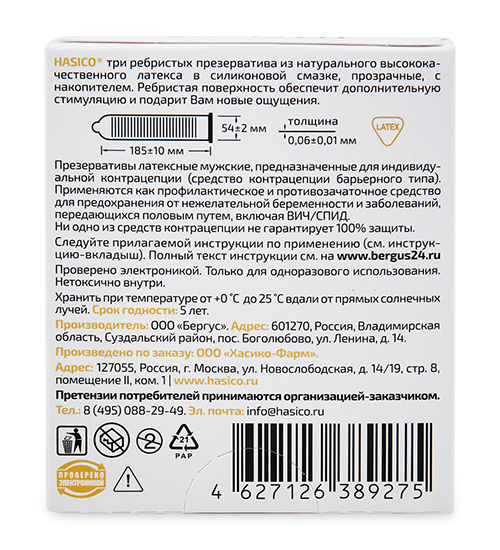 GL-37/20 Хасико презервативы Ребристые №3 (МИ)