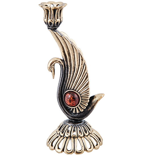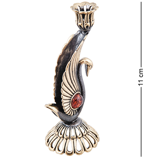 AM-3928 Подсвечник «Лебедь» (латунь, янтарь)
