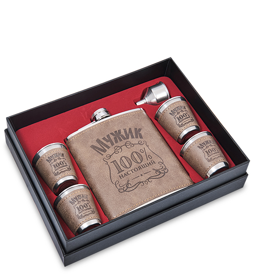GT-91 Подарочный н-р фляжка с аксессуарами «100% мужик» 500 мл