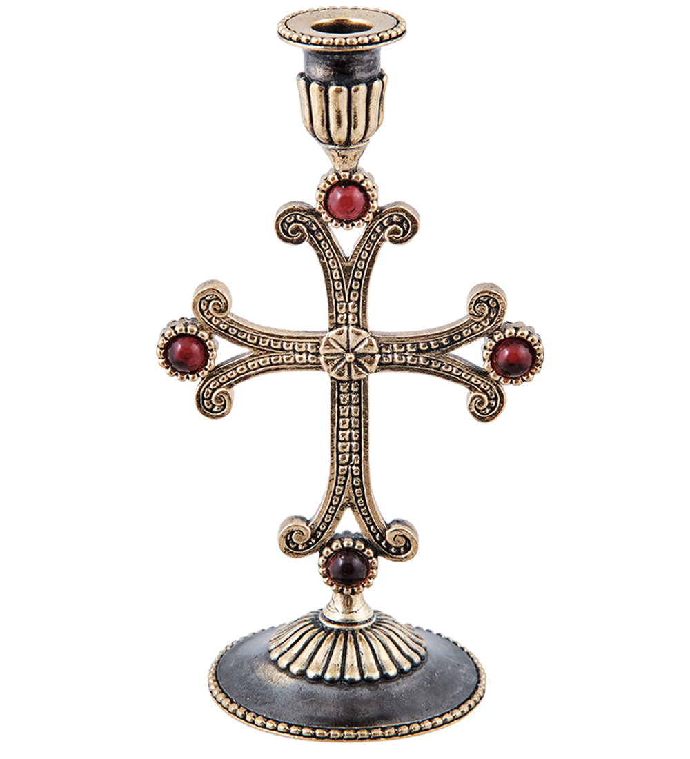 AM-3967 Подсвечник «Крест Канонический» (латунь, янтарь)