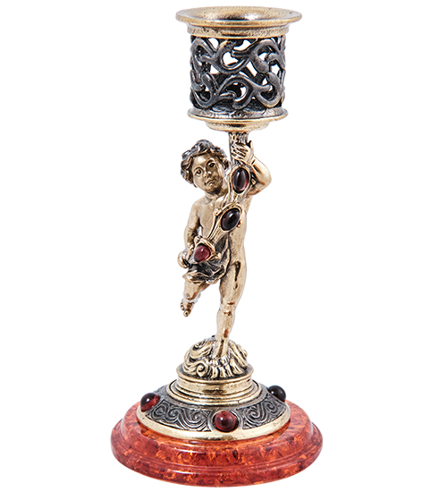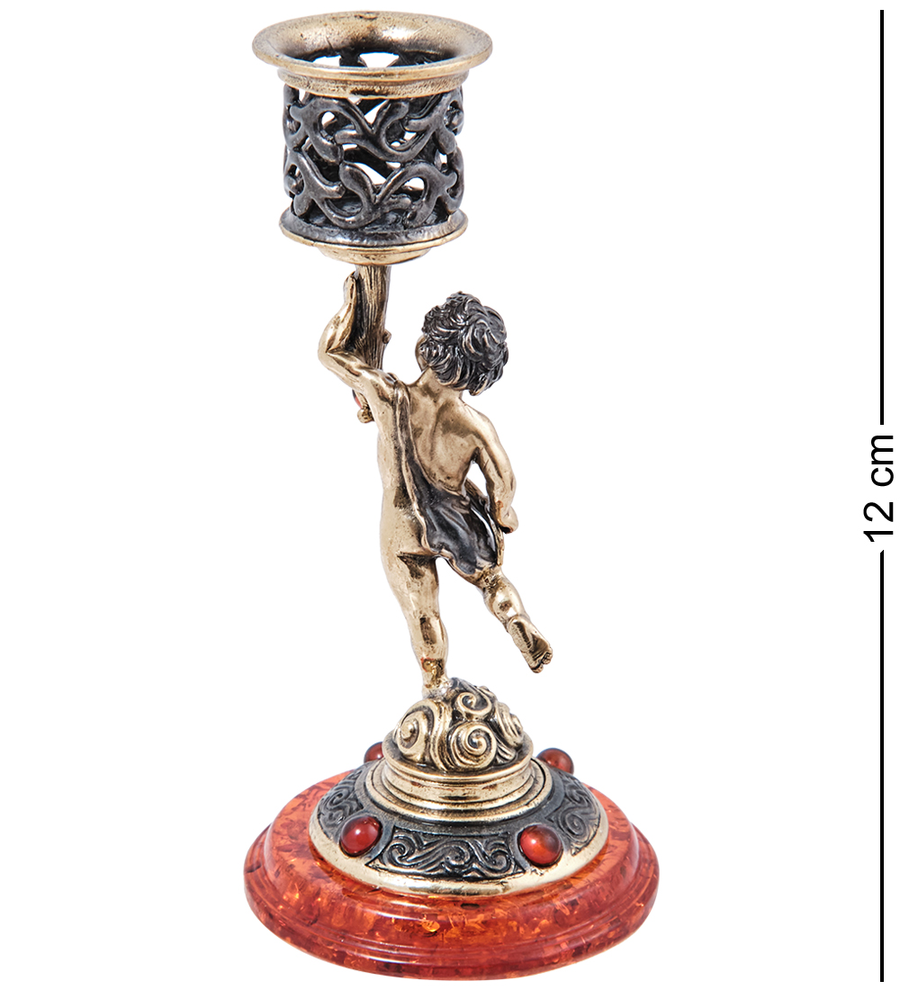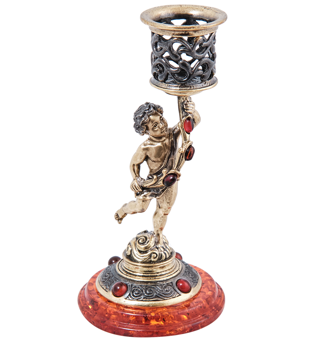 AM-3994 Подсвечник «Амурчик Вдохновение» (латунь, янтарь)