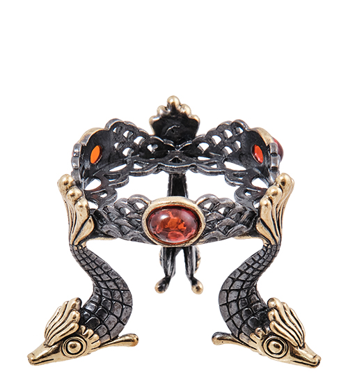 AM-3996 Подсвечник «Рыбы» (латунь, янтарь)